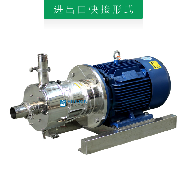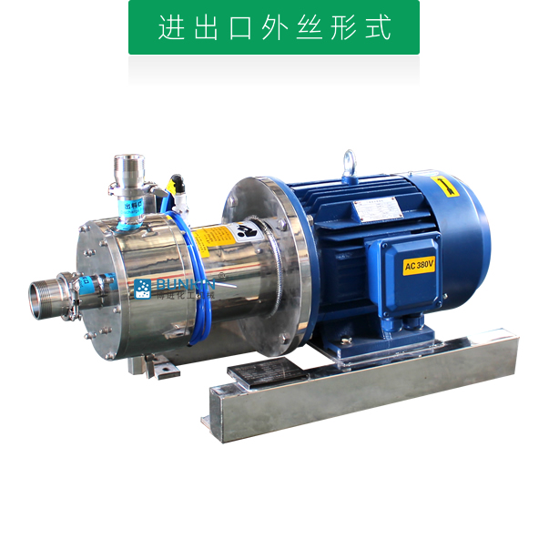 单级乳化泵是连续式生产或循环处理精细物料的均质乳化设备。电机带动转子高速运转,通过机械外力作用的方法使液-液、固-液物料颗粒粒径变窄,使一种相均匀分布到另一种或多种相中,达到细化均质、分散乳化效果,从而形成稳定的乳状液的状态。单级乳化泵前级可配置送料泵,对中高粘度物料有一定的适用性。设备噪音低,运转平稳,无死角,物料强制性通过分散、剪切的作用。具有短距离、低扬程输送功能。【产品专利号:ZL201820997023.8】
