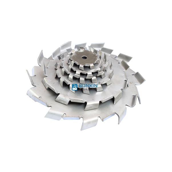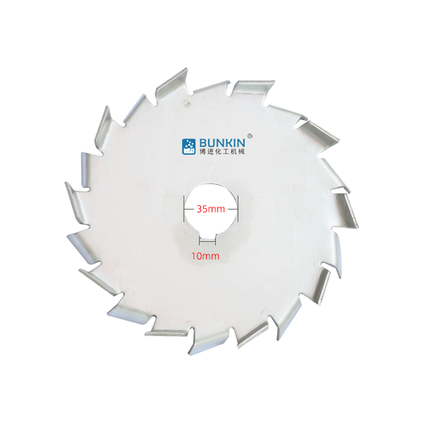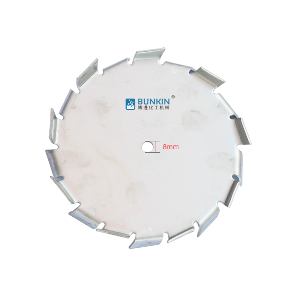 分散盘是配套于高速分散机的配件,连接于高速分散机主轴。分散机主轴高速运转时,分散盘上下方呈现旋转状态,同时会在边缘2.5-5mm处形成湍流区。分散盘上下锯齿对涂料、油漆、干粉、固—液等物料进行高速的剪切、撞击、粉碎、分散,以便达到迅速混合、溶解、分散、细化的状态。