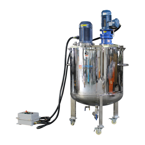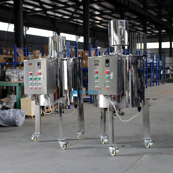 乳化罐的作用是将一种或多种物料(水溶性固相、液相或胶状物等)溶于另一种液相,并使其水合成为相对稳定的乳化液。广泛适用于食用油类、粉类、糖类等原辅料的乳化混合,某些涂料、油漆乳化分散也使用乳化罐,尤其适用于某些难溶胶状类添加剂如CMC、黄原胶等。