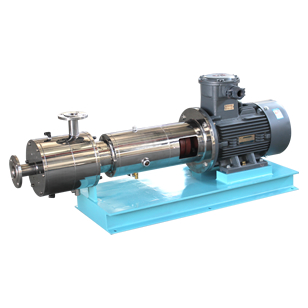 管线式三级乳化泵是连续式生产或循环处理精细物料的高速高效率乳化机。电机带动转子高速运转,通过机械外力作用的方法使液-液、固-液物料颗粒粒径变窄,使一种相均匀分布到另一种或多种相中,达到细化均质、分散乳化效果,从而形成稳定的乳状液的状态。单级管线式高剪切乳化机前级可配置送料泵,对中高粘度物料有一定的适用性。设备噪音低,运转平稳,无死角,物料强制性通过分散、剪切的作用。具有短距离、低扬程输送功能。【产品专利号:ZL201820997023.8】