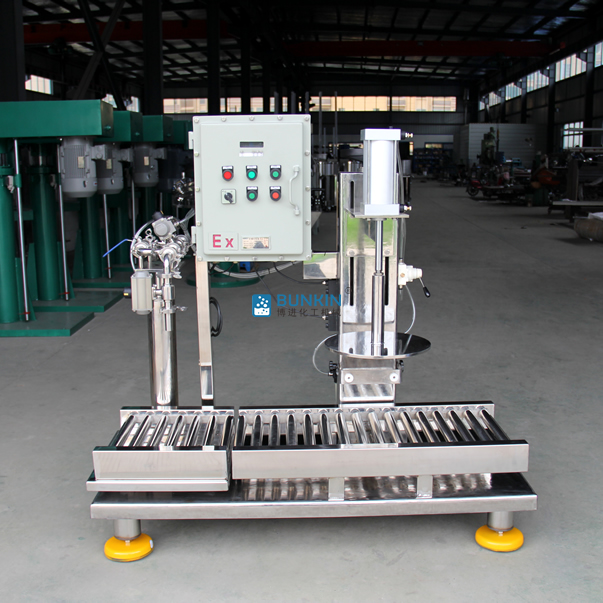 单头半自动灌装机采用重量法计量,通过称重传感器输出信号控制进料阀的开度以实现自动灌装的目的。进料口前端配有进料泵或者原料储罐加压的方式将物料从罐体送至灌装机,在灌装前可以增加过滤装置去除杂质,保证产品质量;该设备具有灌装效率高、灌装误差小的优点,在涂料、油墨、油漆、沥青、胶水、润滑油、石油化工、精细化工等行业有广泛的应用,不仅适合流体的灌装,同样适合膏体产品的灌装。