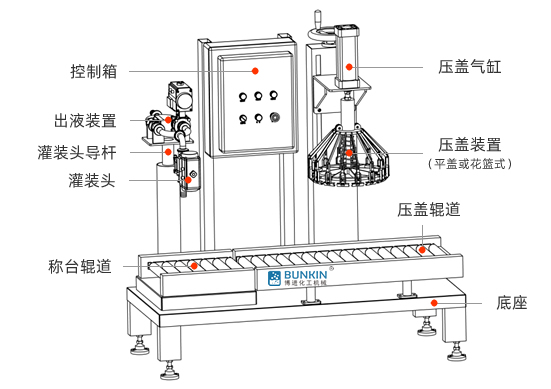个性化设计,可一人完成操作,设定指定灌装量,灌装按钮一键完成自动清零,自动去皮功能。采用辊轴输送,可随操作工人习惯调整放桶位置均可灌装。