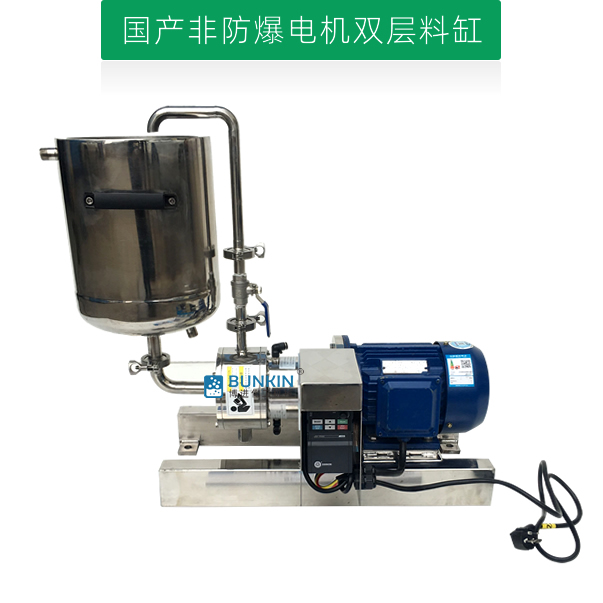 实验室乳化泵电机带动转子高速运转,通过液力和离心力作用的方法使液-液、固-液物料颗粒粒径变窄,使一种相均匀分布到另一种或多种相中,达到细化均质、分散乳化效果,从而形成稳定的乳状液的状态。设备前级可配置送料泵,对中高粘度物料有一定的适用性。设备噪音低,运转平稳,无死角,物料强制通过分散、剪切的作用;具有短距离、低扬程输送功能,自带单/双层料筒循环,方便易清洗。
