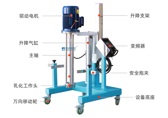 2、乳化机固定在气动升降支架上,移动方便,操作简单。