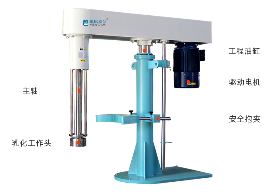液压升降乳化机是通过机械外力作用的方法使液-液、固-液物料颗粒粒径变窄,使一种相均匀分布到另一种或多种相中,达到细化均质、分散乳化效果,从而形成稳定的乳状液的状态。液压升降乳化机工作头由不锈钢锻件精制而成,根据不同乳化要求设备多种工作头结构,液压升降乳化机通过液压控制升降。
