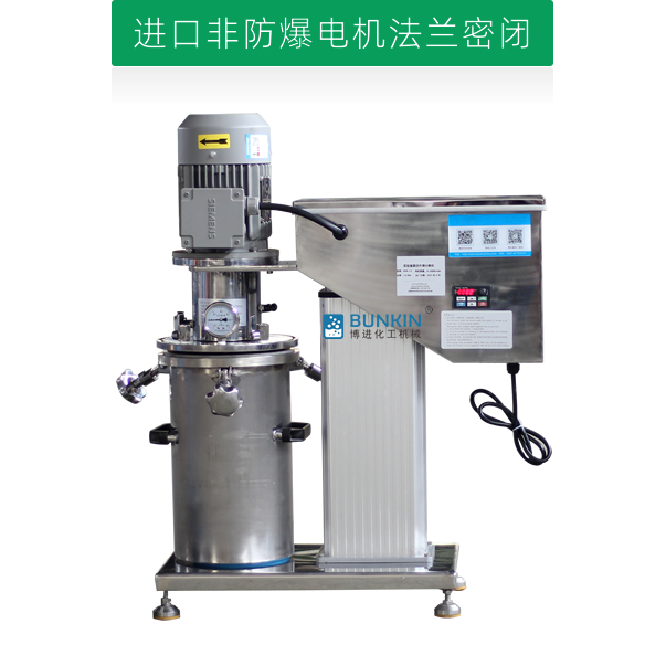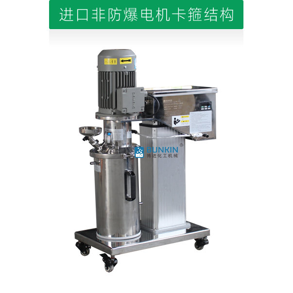 设备带有电动升降,噪音低能够快速升降和固定密封桶;分散盘采用内六角螺栓与主轴固定,能够方便快速拆卸更换,清洗容易;带有锁扣密封条装置,可以快速将密封桶固定。