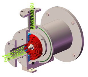 单级高剪切乳化泵采用卧式结构。在狭长的工作腔内装有一组转定子,转定子可设计成单级两层或者单级六层结构,转定子对偶耦合。由电机带动中间轴进行高速运转,转定子形成真空,物料从进口被吸入转定子腔内,强大动能使转子产生极高的线速度,使物料在转、定子间隙之间经过强烈的撞击、破碎、离心挤、液层摩擦、强力剪切之后飞射出去,在多种不同方向力的作用下,产生强大紊流,物料从出口流出。并可根据工艺要求进行多次循环处理。
