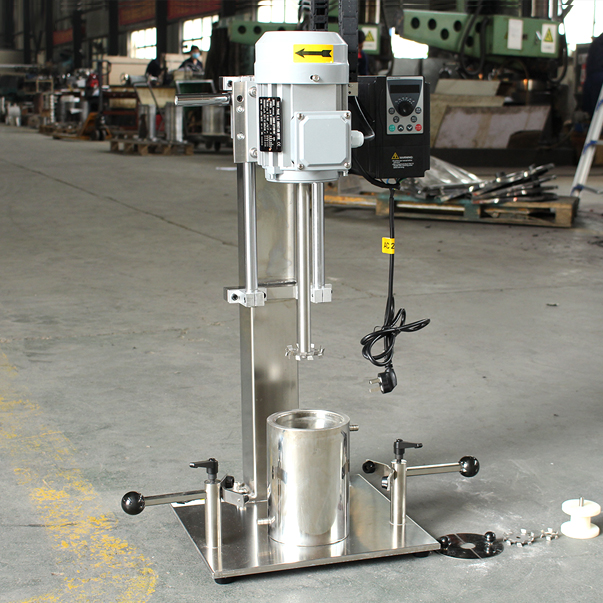 设备带有锁紧及升降手柄,能够快速升降和固定;分散盘采用内六角螺栓与主轴固定,能够方便快速拆卸更换,清洗容易;带有夹桶装置,可以快速将搅拌桶固定,防止桶在工作中发生位移造成安全事故。